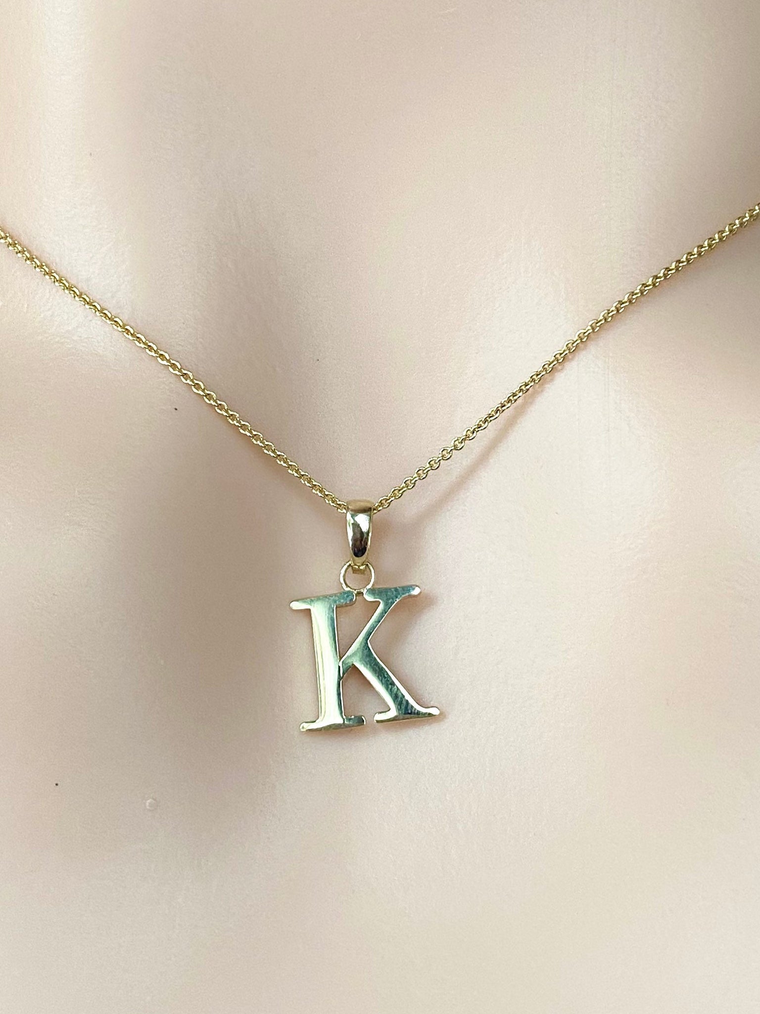 K Letter Pendant Gold, 10K Solid Gold, Small Letter Necklace, Minimalist Necklace for Woman,