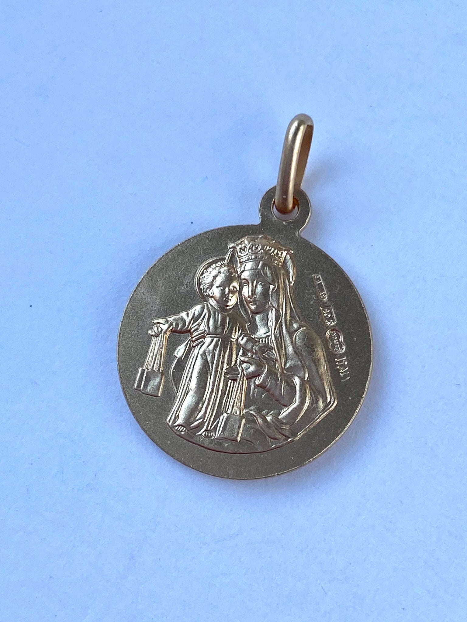 • Load image into Gallery viewer, Sacred Heart Of Jesus, 16mm, 10K Solid Gold, Double Face Scapular